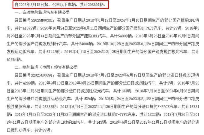 字据国度商场监管总局音问:奇瑞捷豹路虎汽车有限公司、捷豹路虎(中国)投资有限公司、捷豹路虎(宁波)交易有限公司调回部分国产及入口汽车,险些波及了全系车型,一共632,452辆。