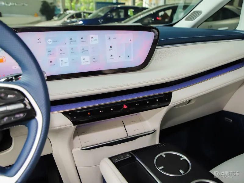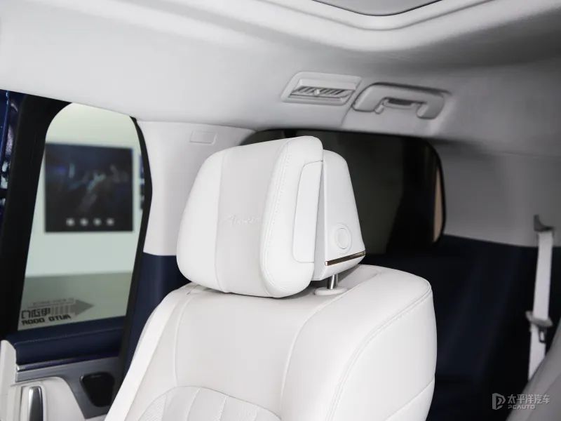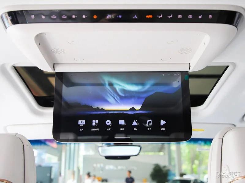 同期后排车顶领有15.6英寸吸顶大屏,可手动和电动颐养,坐姿和躺姿都可领有最好不雅看角度,相沿蓝牙及WiFi勾通,安卓和iOS手机系统无线投屏,内置沙发管家APP,提供千余种生态摆布下载。