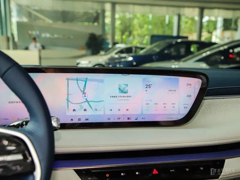 GL8陆尊 PHEV配备EYEMAX 30吋一体弧面6K屏和全彩HUD昂首显现屏,在科技感方面有了强劲的突出,由于这款屏幕有一定的弧度,因此驾驶员使用的时候会比笔直的屏幕要当然顺遂一些。菜单逻辑上来讲,最常用的如HOME键、Apps主菜单、音乐、舆图、电话、空调等都放在最下方,肖似dock栏,用户不错相配快捷地找到这些病笃功能,而二级菜单和更细分的样式,则以方块状呈现,既好意思不雅也便捷快速点击,而且反应速率上也值得一赞。