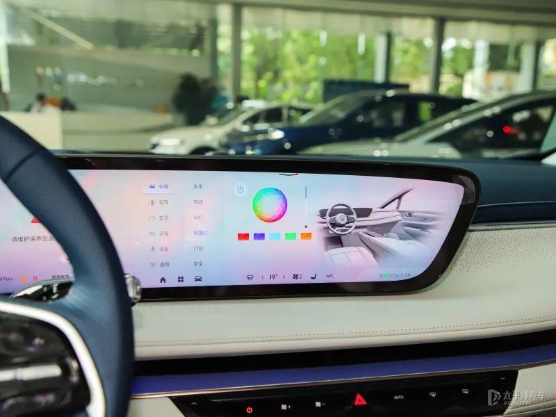 同期座舱内嵌128色流光溢彩动感氛围灯,66颗LED通过动态与静态、直射与瀑布连结的步地交相衬映,终了呼吸、耀眼、活水、背光活水等多场景交互成果。