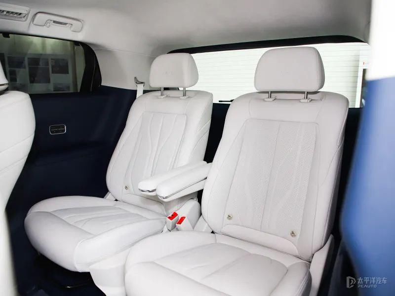 本次咱们实拍的为6座版块,在二排配备了Nappa真皮羽感航空座椅,配备了六向航空头枕,四向腰托、电动腿托、三档位快速加热透风、八点式三强度推拿,你能念念到的惬意功能他都有。