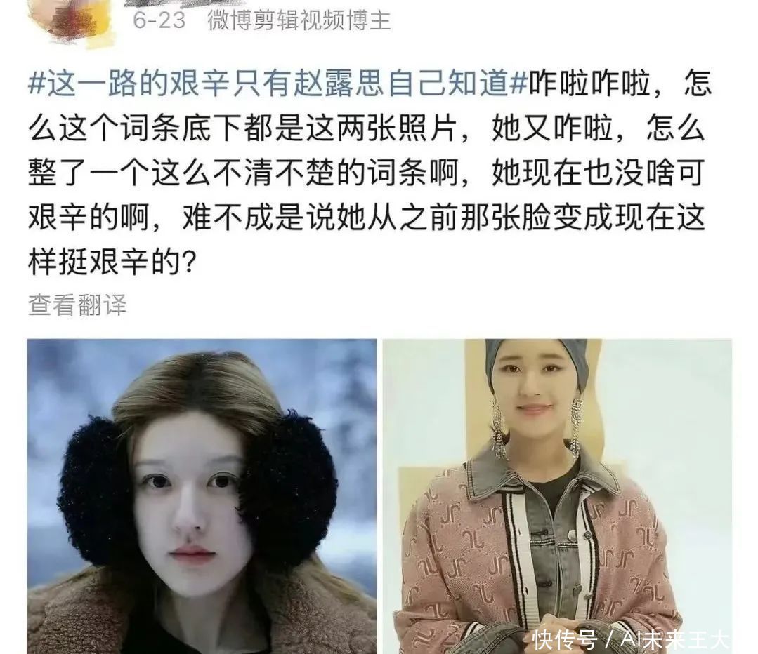 某博主在网上在赵露想素颜话题,晒出她两张不一样图片的对比图。