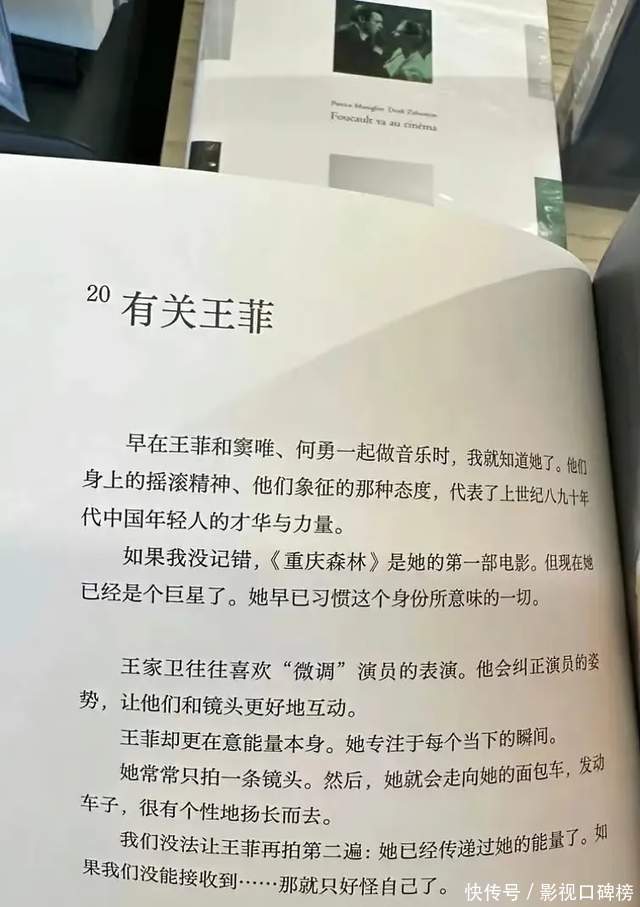 这些顶级演员都因为做事操守受到王家卫搬弄,唯专有一个东谈主残害魔咒,那便是王菲。杜可风在回忆录写到,王菲在片场坚执只拍一条镜头,休止反复重拍。说:“她传递完能量就走,若未捕捉到只可怪咱们我方”。王菲直言:“王家卫讲话变来变去,我从不听他的”“不知谈他思要什么,让作念什么就作念”。因此,王家卫和王菲调和的《重庆丛林》仅用2个月终了。