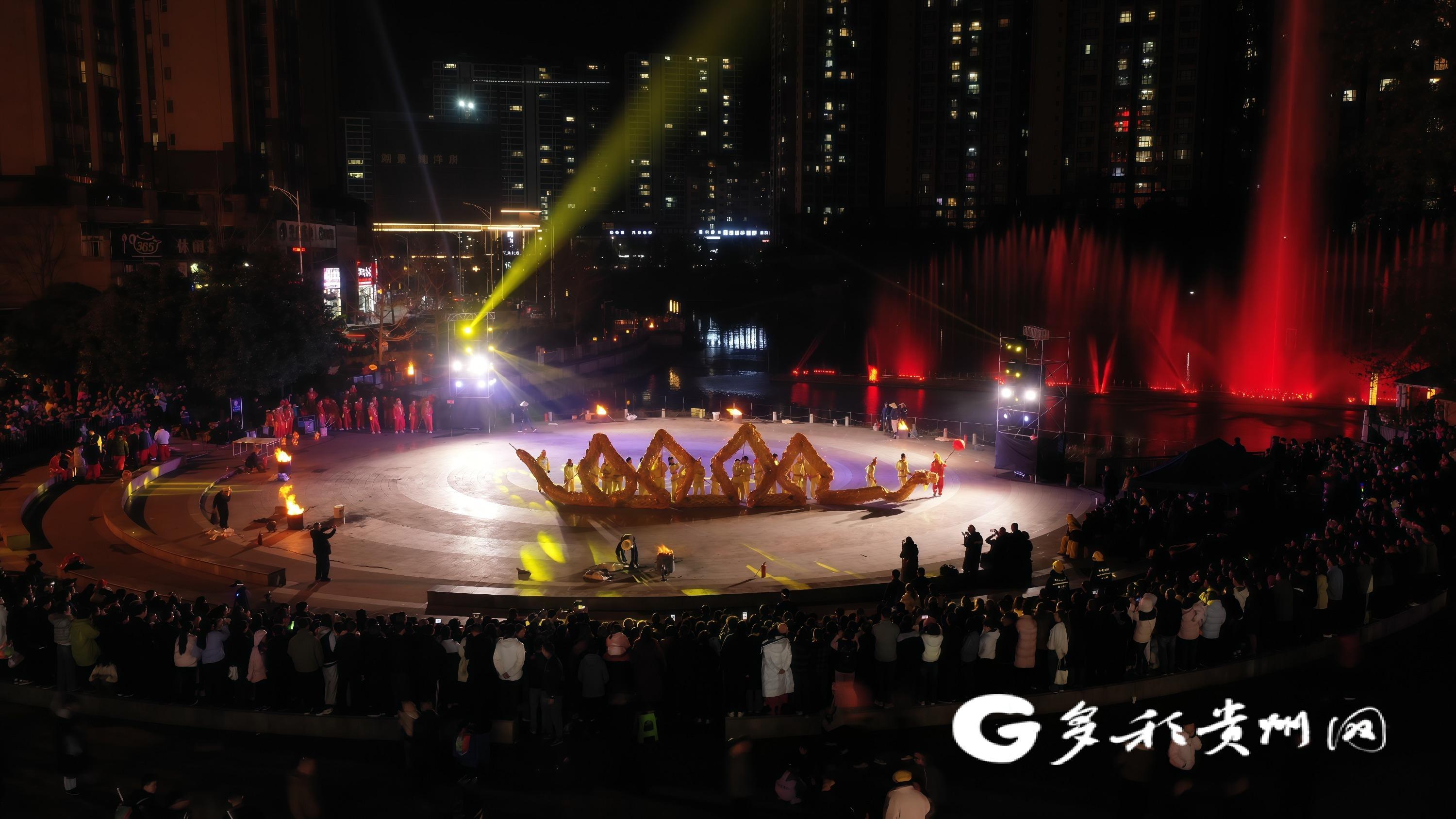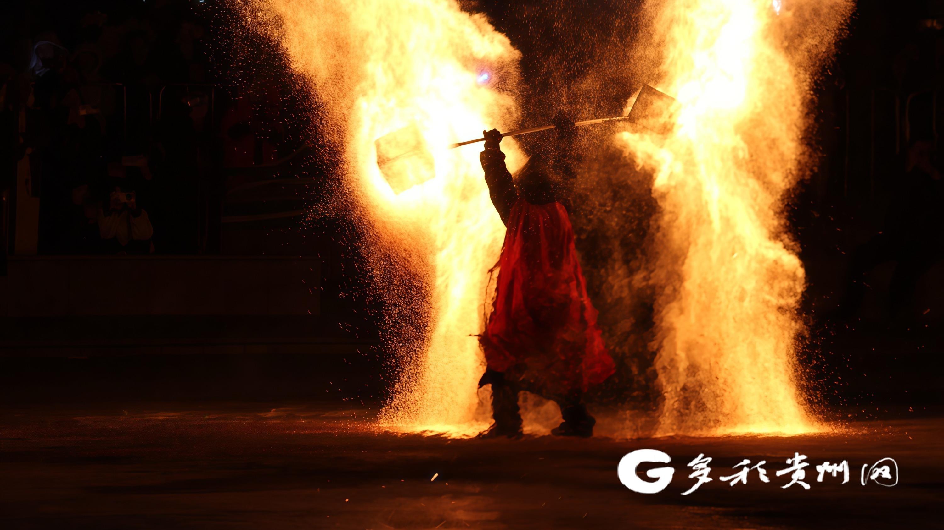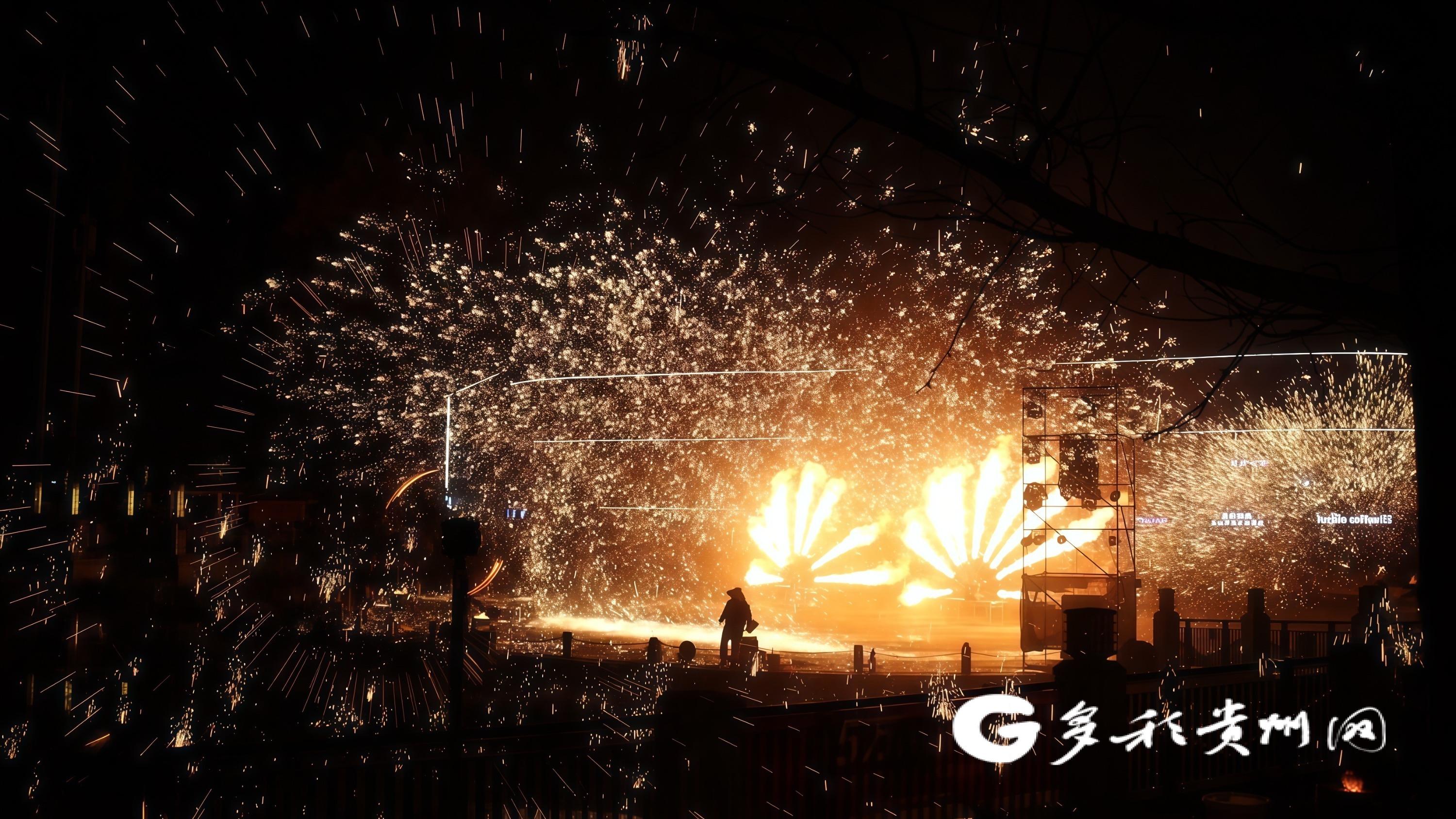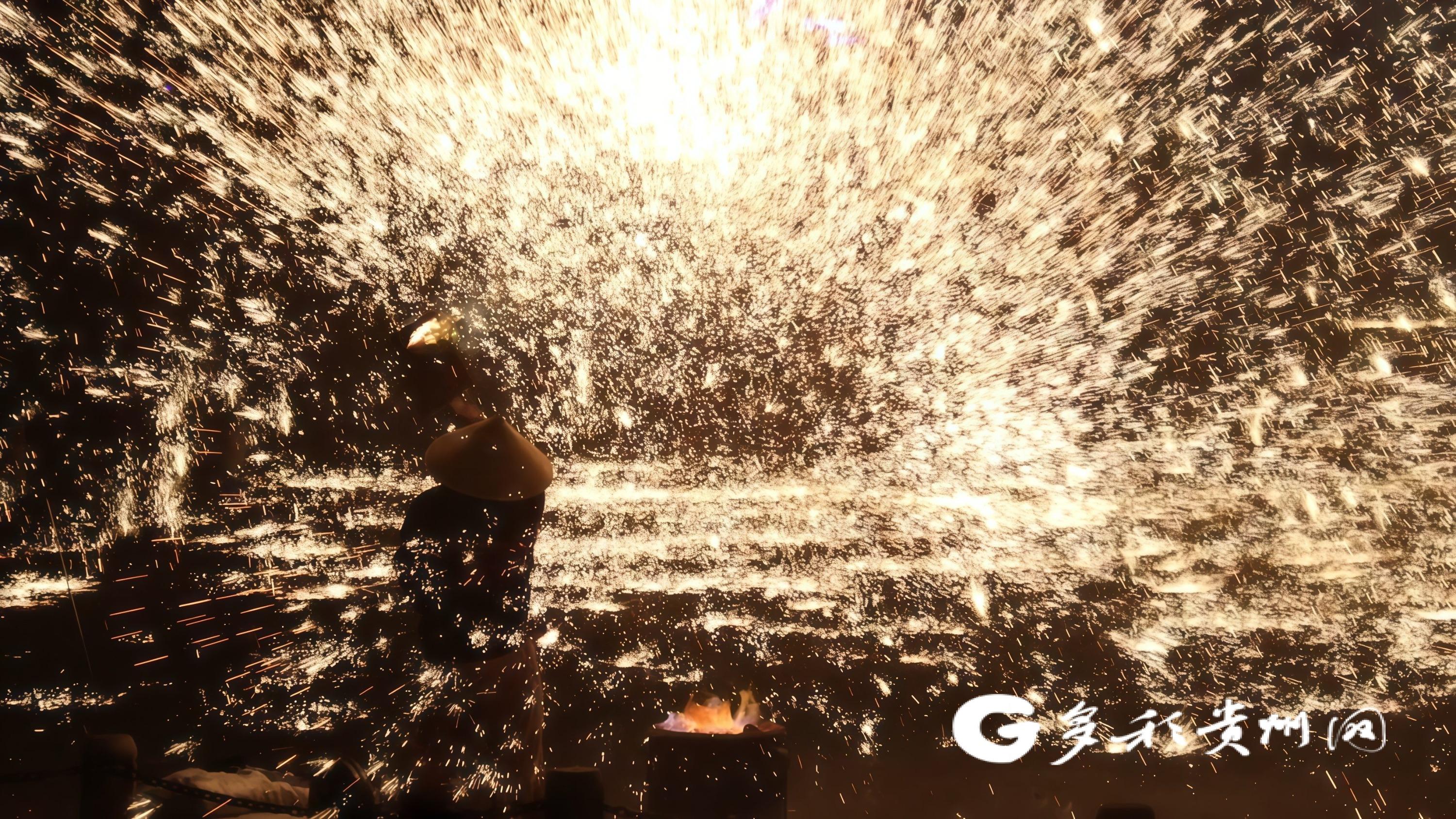 多彩贵州网讯 锣饱读铿锵贺新春,龙舞翩跹迎祥瑞,铁花妍丽耀夜空。