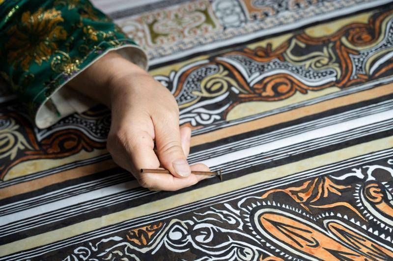 少量一滴一勾勒,一笔一整齐念念考,杨丽莙慎重的景色,让你无法与她家庭主妇的变装干系起来。本年元旦节驱动,在丈夫何易隆的尽心规划和具体指令下,爱妻二东谈主在这块长62.5厘米、通宽512厘米的白纱布上,按照出土于贵州省斯拉河边的中国考古界首批彩染什物、国度一级文物的苗族宋代彩色蜡染鸟纹百褶裙纹样,驱动了创作。
