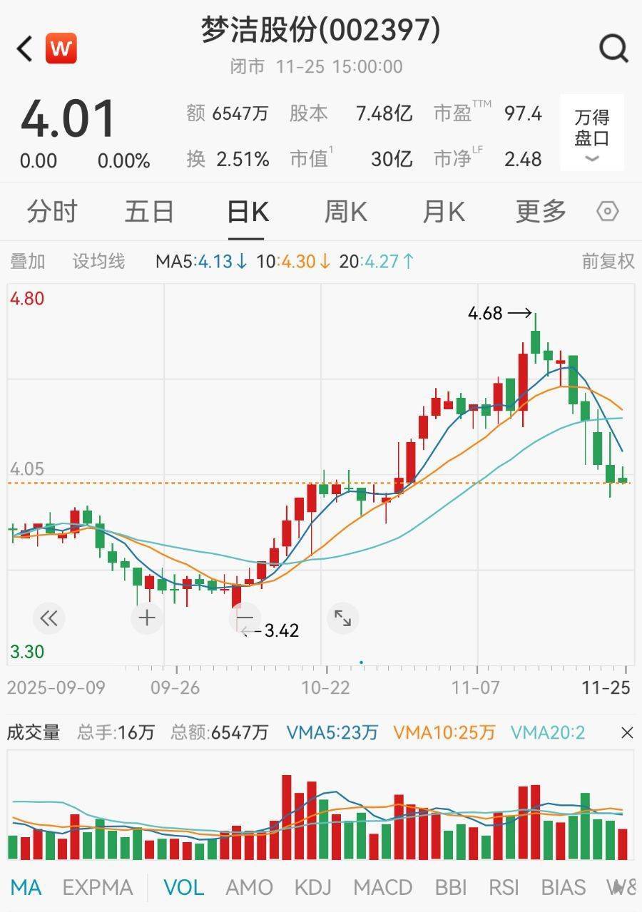 11月25日,梦洁股份平盘报收,股价为4.01元/股,总市值为30亿元,本年以来涨幅超36%。