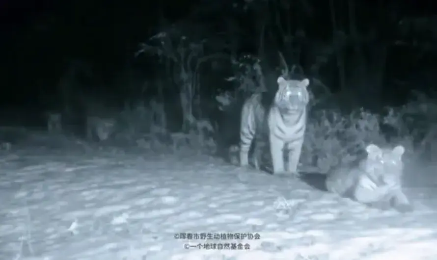 证据珲春市野纯真植物保护协会指出,近期,布设在东北豺狼国度公园珲春林区的红皮毛机,荒僻地纪录到一只母虎带着四只幼虎溜达的影像,证据初步分析数据披露,母虎年事在5至8岁之间,四只幼崽在6至8个月大,均为本年降生的小老虎,而这一次事件詈骂常荒僻的,在田野环境中,纪录到由一只母虎指挥四只幼崽的无缺家庭群体极为荒僻,在我国皆是一次保护之下的大冲破。