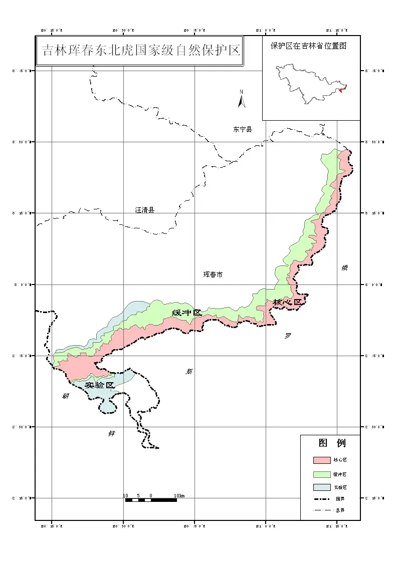 该保护区东与俄罗斯波罗斯维克、巴斯维亚两个豺狼保护区和哈桑湿地保护区接壤,西与朝鲜的卵岛和藩蒲湿地保护区相邻,属于野纯真物类型的天然保护区,主要保护对象为国外濒危物种、国度Ⅰ级重心保护野纯真物东北虎、豹及栖息地,是以,这算是东北虎串门的进攻地带,全球不错看下舆图画图的情况,就看赫然了。