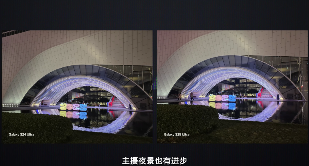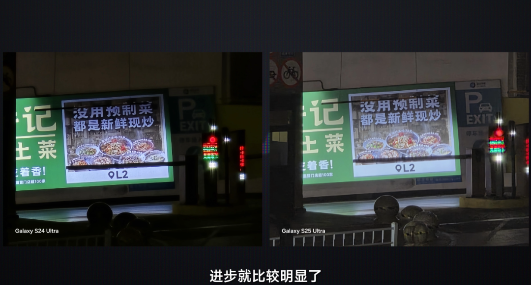 白昼的样片移步到我们的上手视频,这里重心来望望夜景阐述,10 倍长焦夜景的阐述关于 S24 Ultra 区别不大,统一水平,放大看的话,略有普及。
