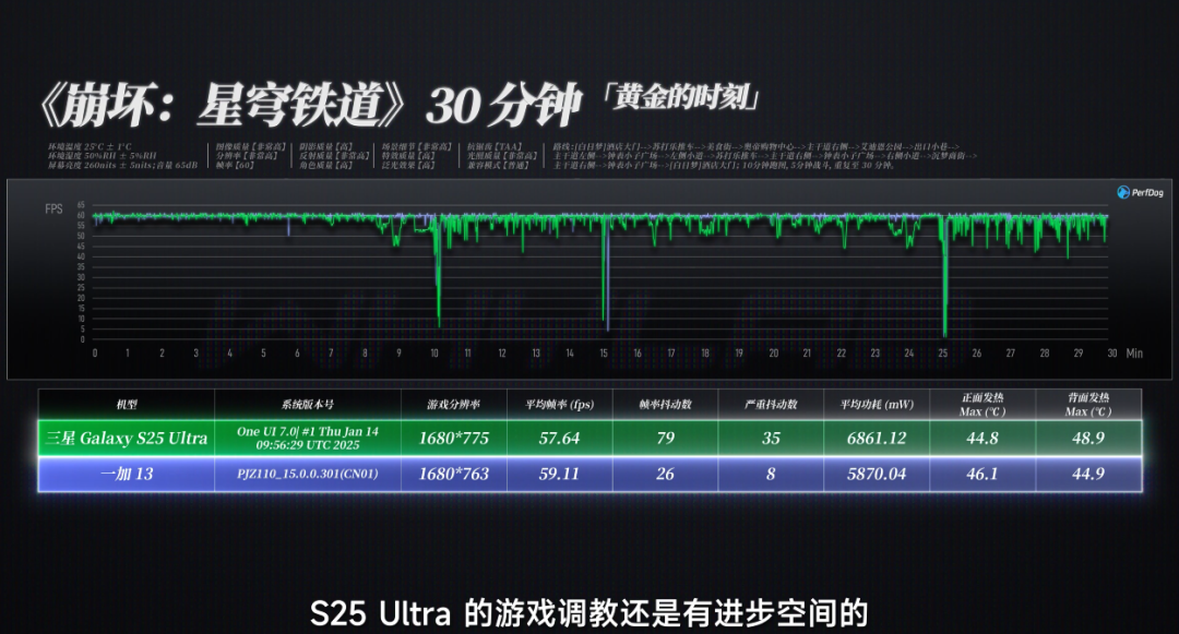 前边都是和三星我方比,如果和国产旗舰比,S25 Ultra 的游戏调教如故有越过空间的,游戏内功耗如故会偏高少量,举座属于平素骁龙 8 至尊的水平。