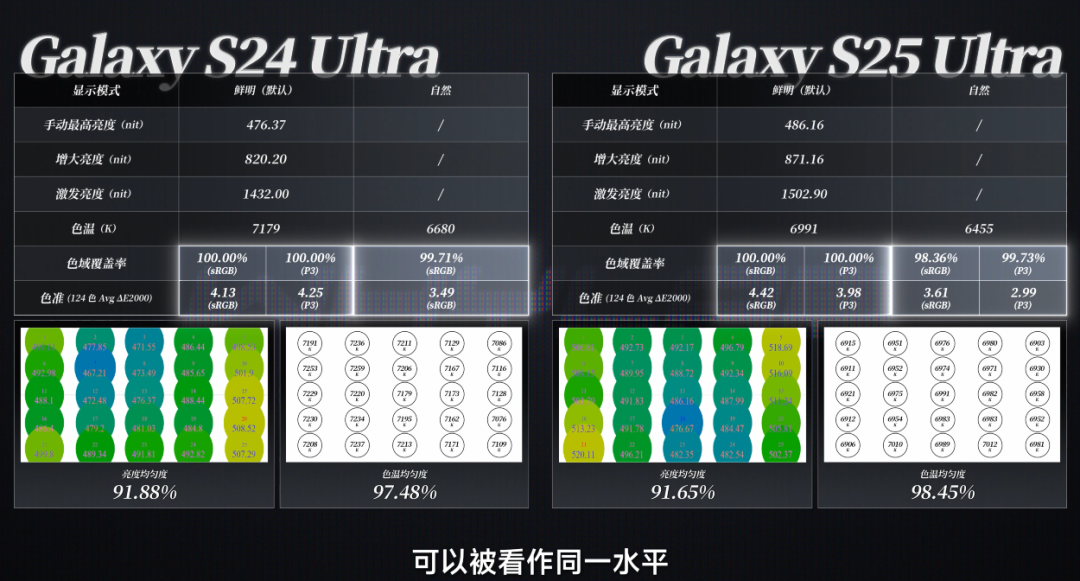 S25 Ultra 使用了一块自家的 2K 屏幕,使用了 m13 增强版的发光材料。精细不是 iPhone 16 上的 m14。