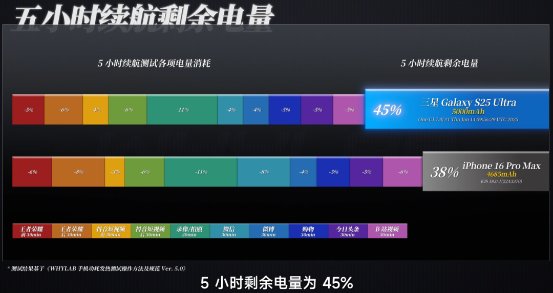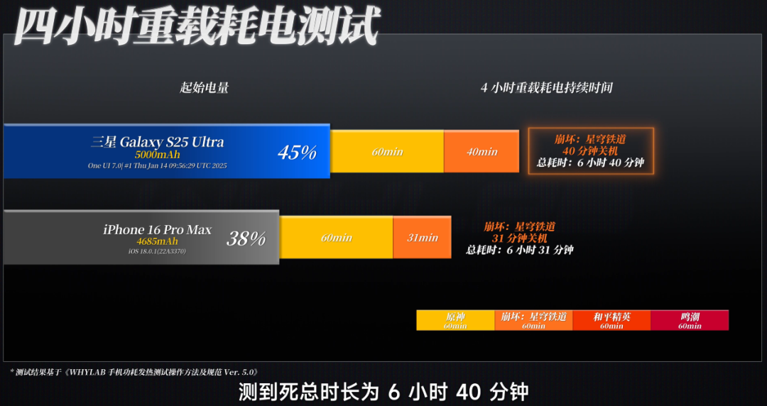 测到死总时长为 6 小时 40 分钟,一经突出了 iPhone 16 Pro Max,然称不上建壮,但一经不再是新安卓旗舰中的垫底水平了,如果你在使用三星之前的老机型,那么此次 S25 Ultra 在续航上的普及如故很可不雅的。
