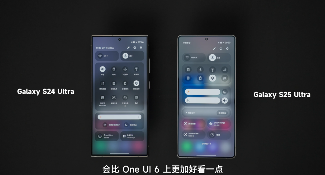 见知中心和适度中心采纳了全新的分时势贪图,不外国内安卓系统操纵对称的下拉判定逻辑,三星唯独在屏幕靠右 1/3 处下拉才是适度中心,刚上手如故需要适合一下的。适度中心举座如故两段式的结构,但功能排布和 UI 的圆角贪图会比 One UI 6 上愈加颜面少量。
