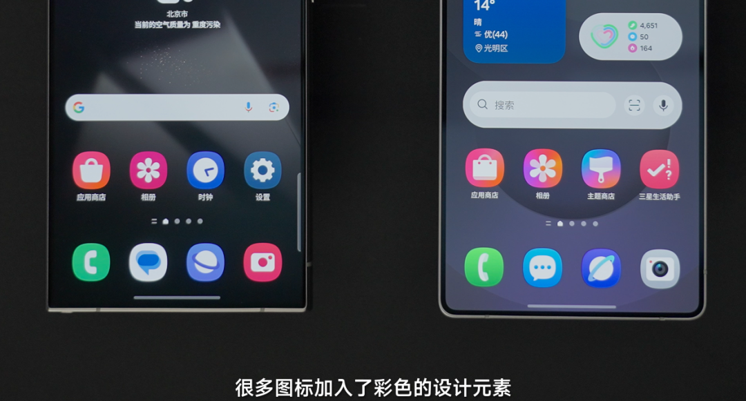 接下来重头戏 One UI 7,如果说之前国产厂约定制安卓给我的印象是丝滑的非线性动画,那么此次的此次的 One UI 7 视觉成果可以用多彩和高效来空洞。领先图标进行了重绘,从 One UI 6 的十足扁平酿成了刻下的半拟物作风,不知谈是不是为了隆起 AI 这个卖点,许多图标加入了彩色的贪图元素。这个作风上的变化可以打几分?